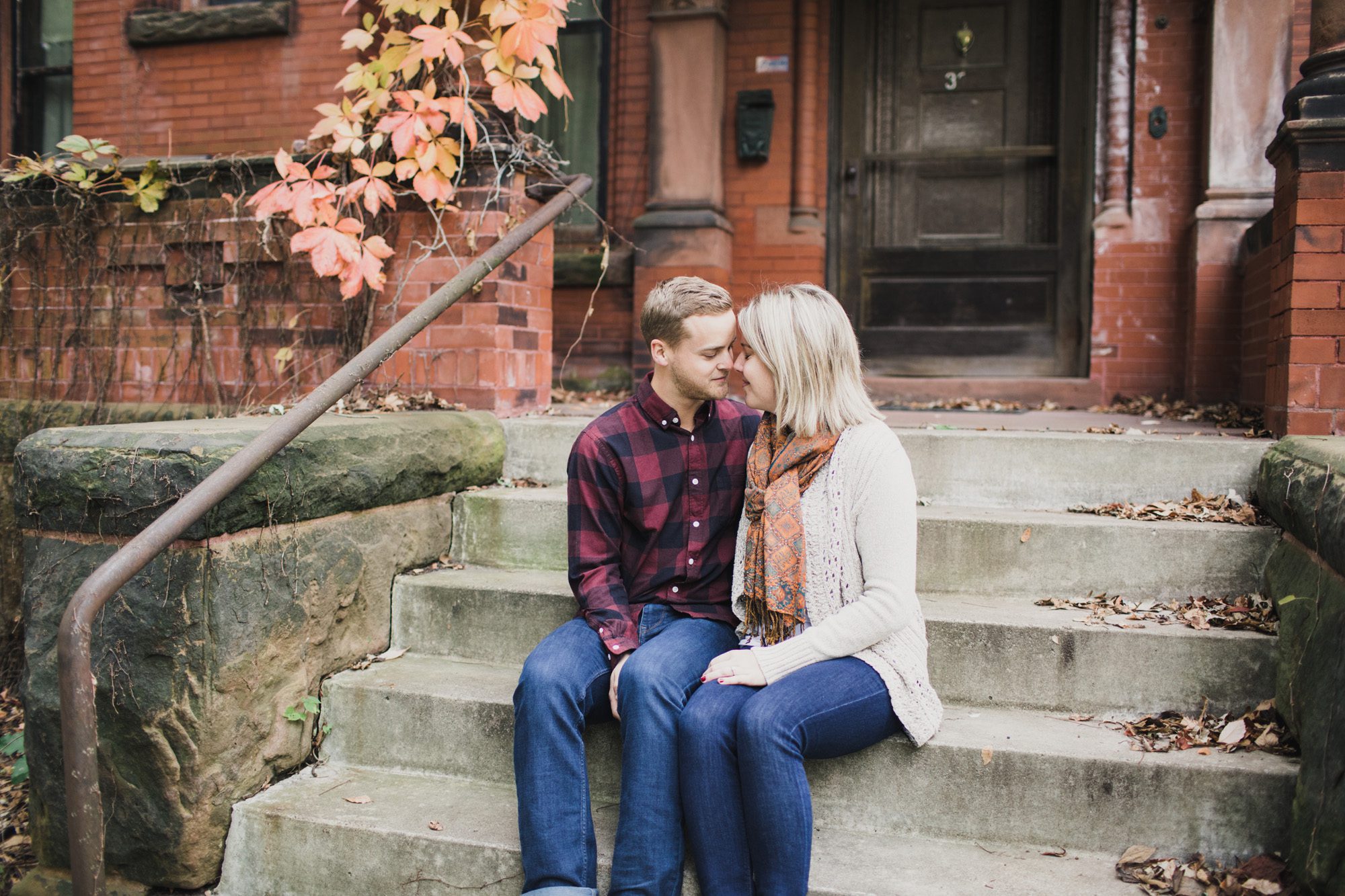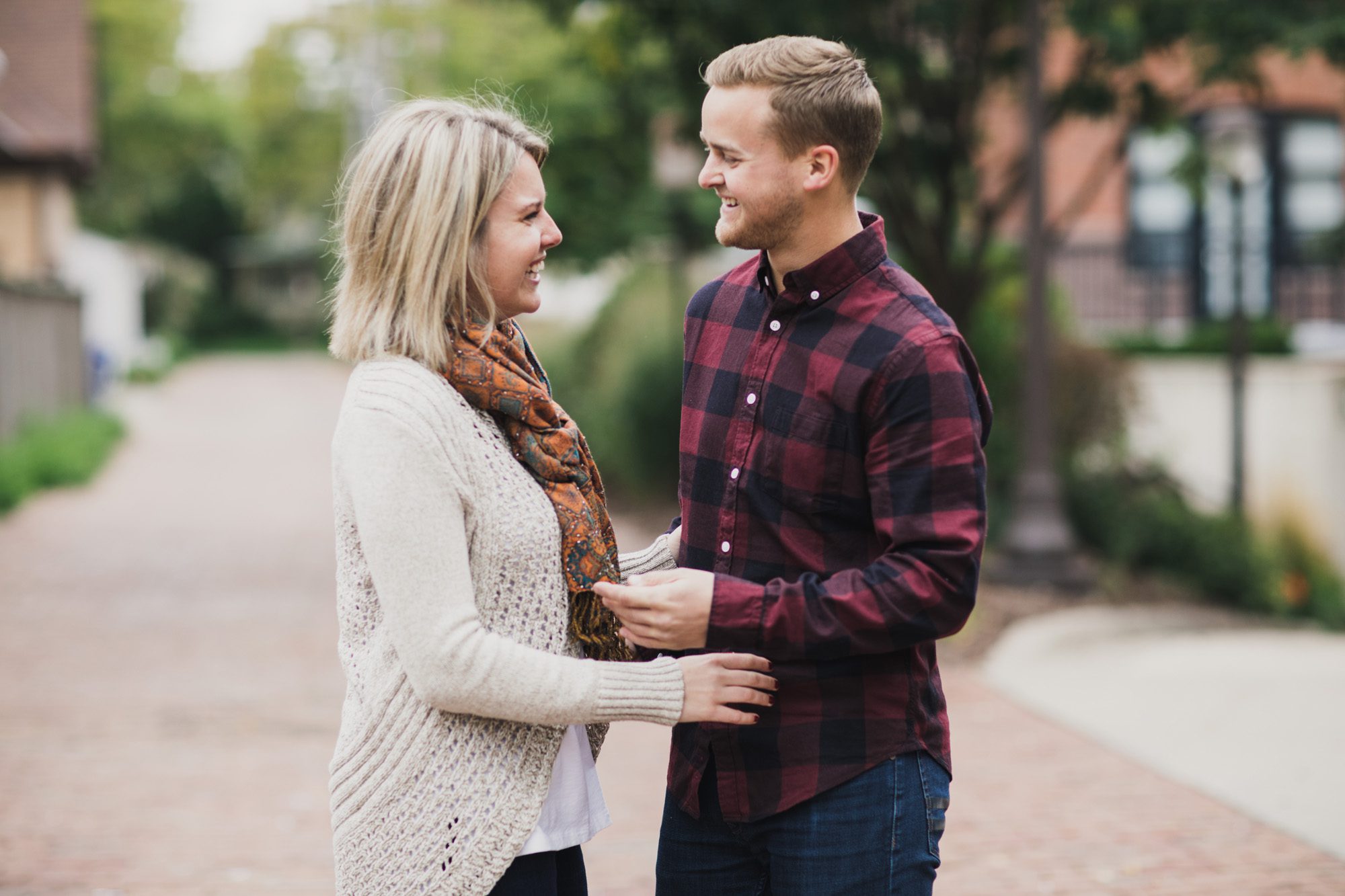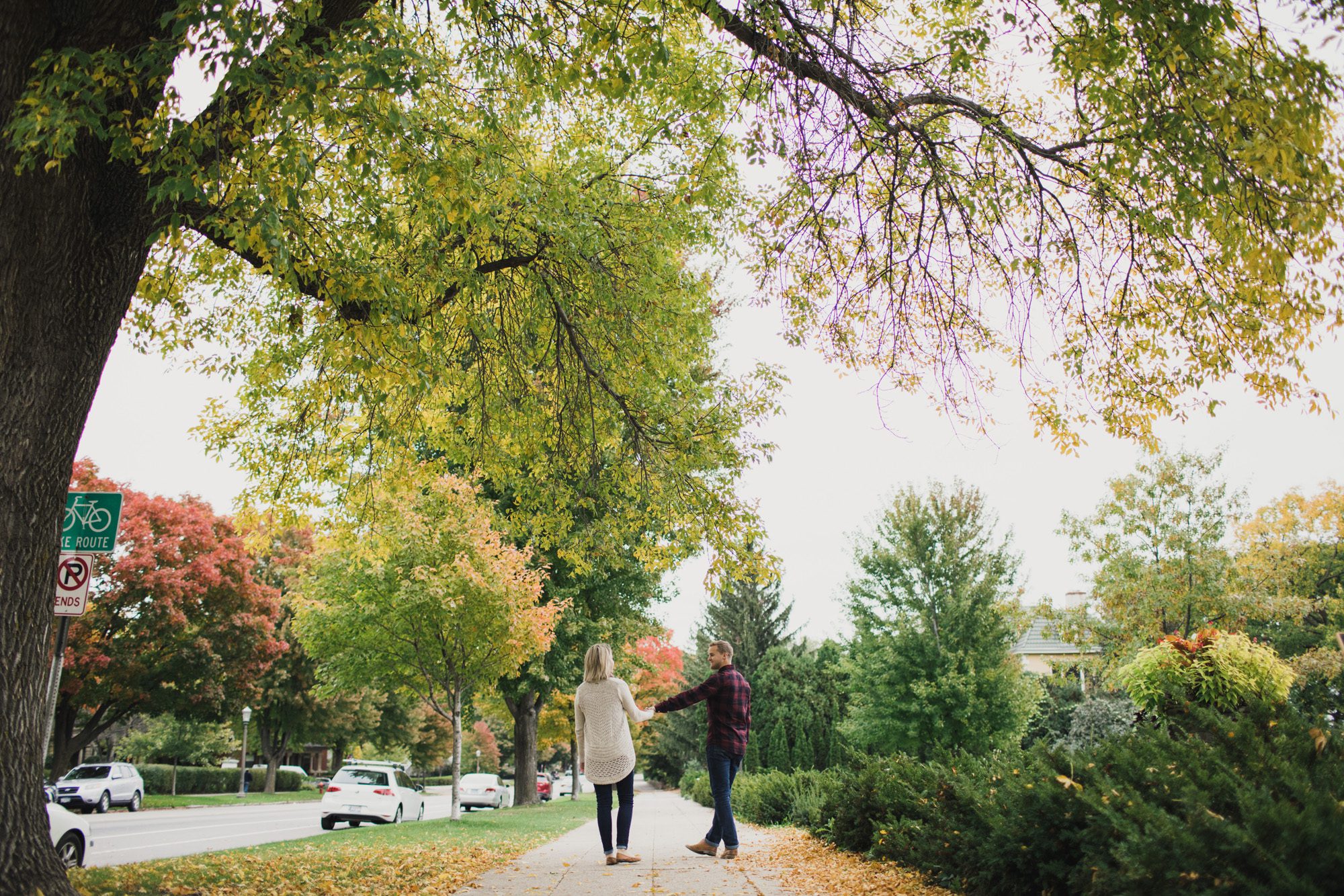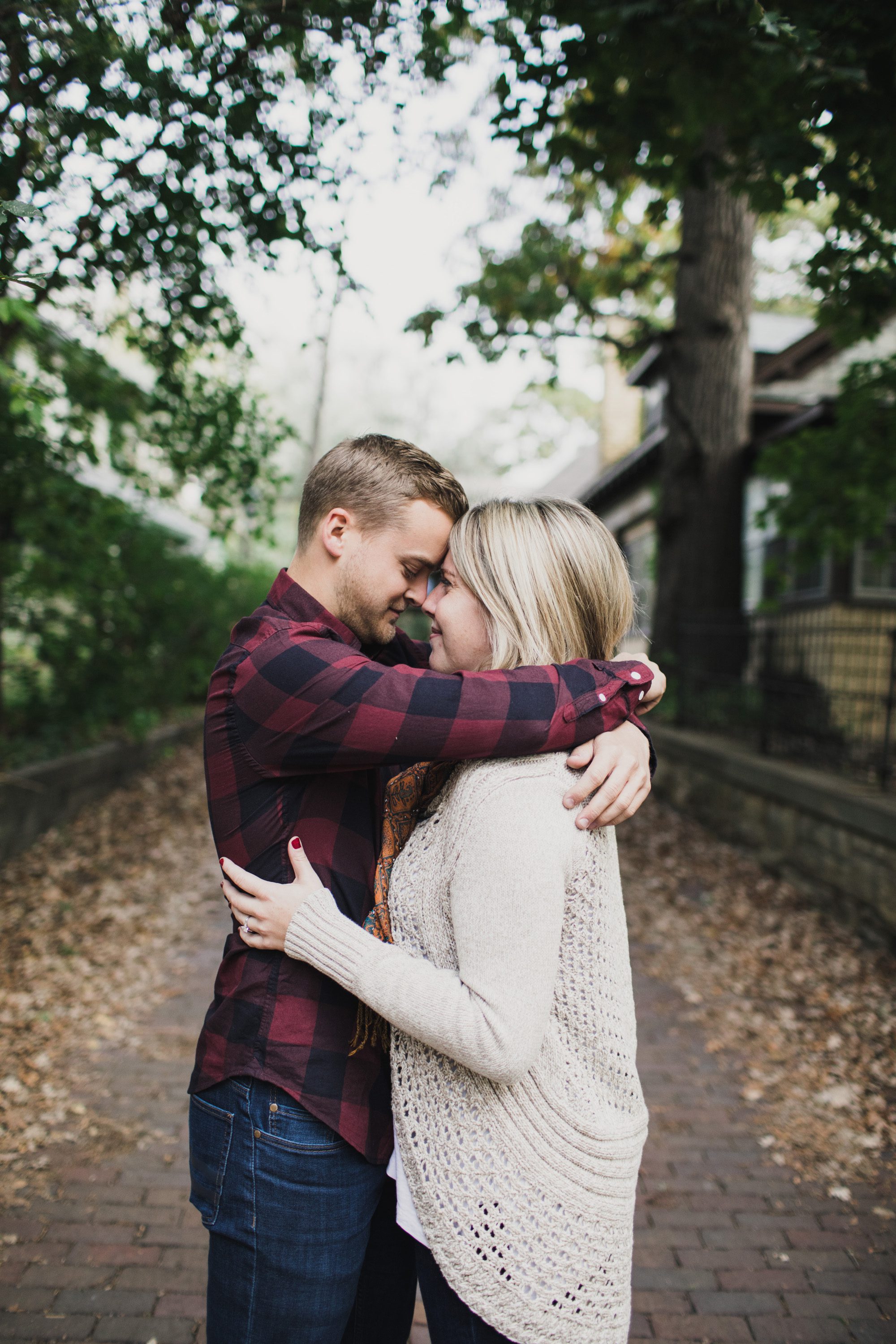 Oh I just love these two! Kathleen and Bill knew they wanted their engagement photos along Summit Ave in St. Paul. St. Paul is home to them & this route along Summit ave was theirs :). We walked along and down to the special spot where Bill asked Kathleen to marry him and it all felt so special to me. I just LOVE when couples incorporate a location that is personal into their photoshoots!